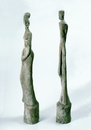 Figures, c.1996-1997 cement patinated 112 x 18 x 18 cm